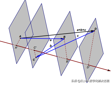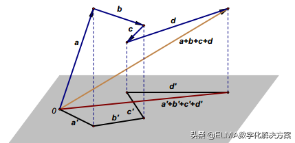 多个或有限个向量的和在任意平面上投影等于各个向量在同一平面上投影的和。
