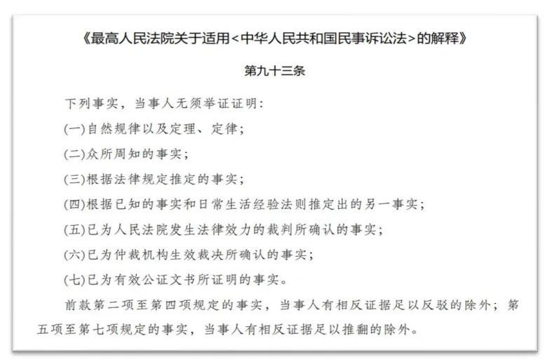 ①免证事实无需再行证明:根据《民诉法司法解释》第93条的规定,以下七类事实当事人无需举证证明。因免证事实无需举证证明,故亦无证明标准或证明程度之说。