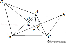 【解析】(1)证明:①如图1﹣1中,作AM⊥CD于M,AN⊥BE于N设AB交 CD于O.