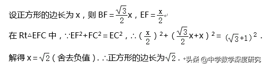 (3)作辅助线,过E点作EF⊥BC交CB的延长线于F,由题意求出∠EBF=30°,设正方形的边长为x,在Rt△EFC中,根据勾股定理求得正方形的边长为√2.