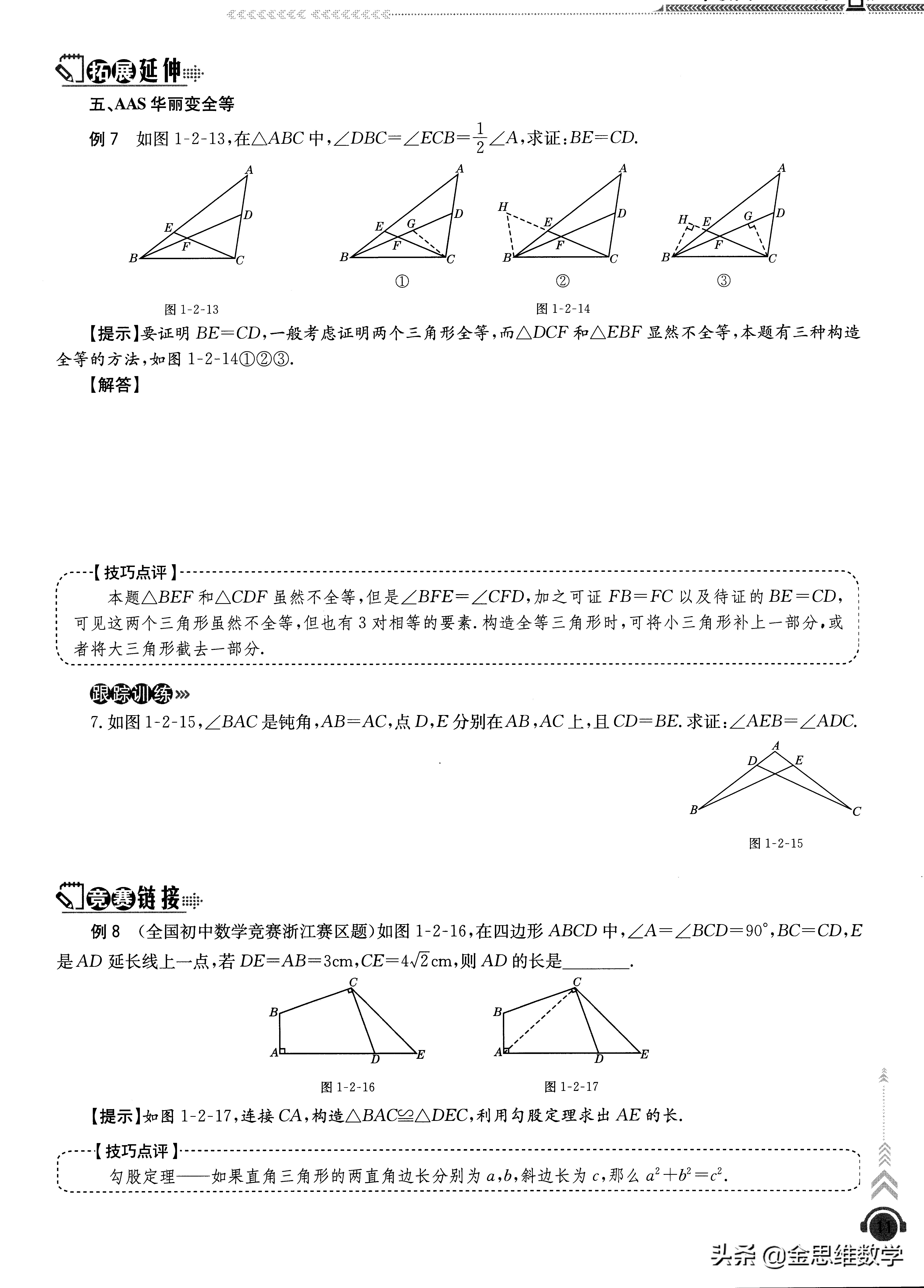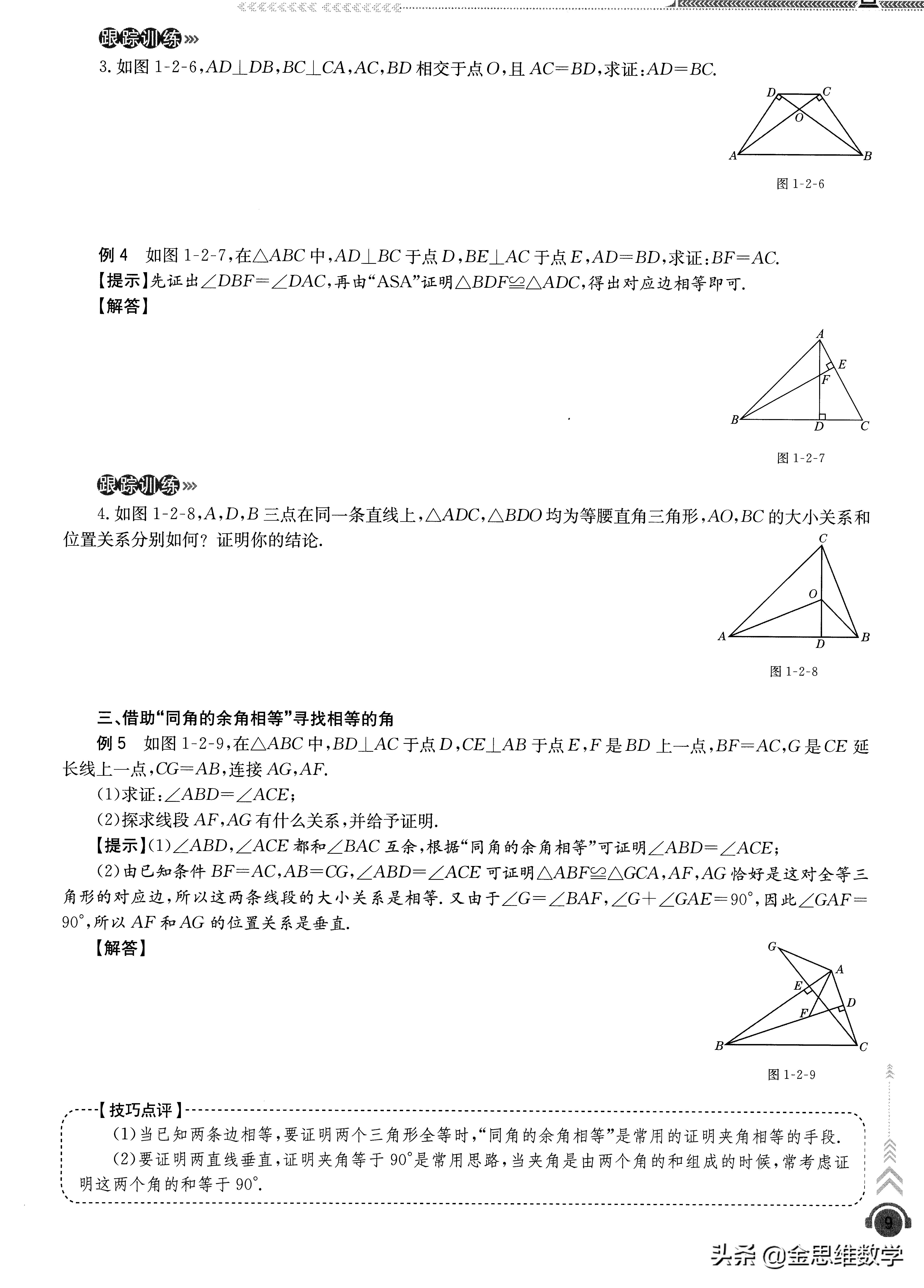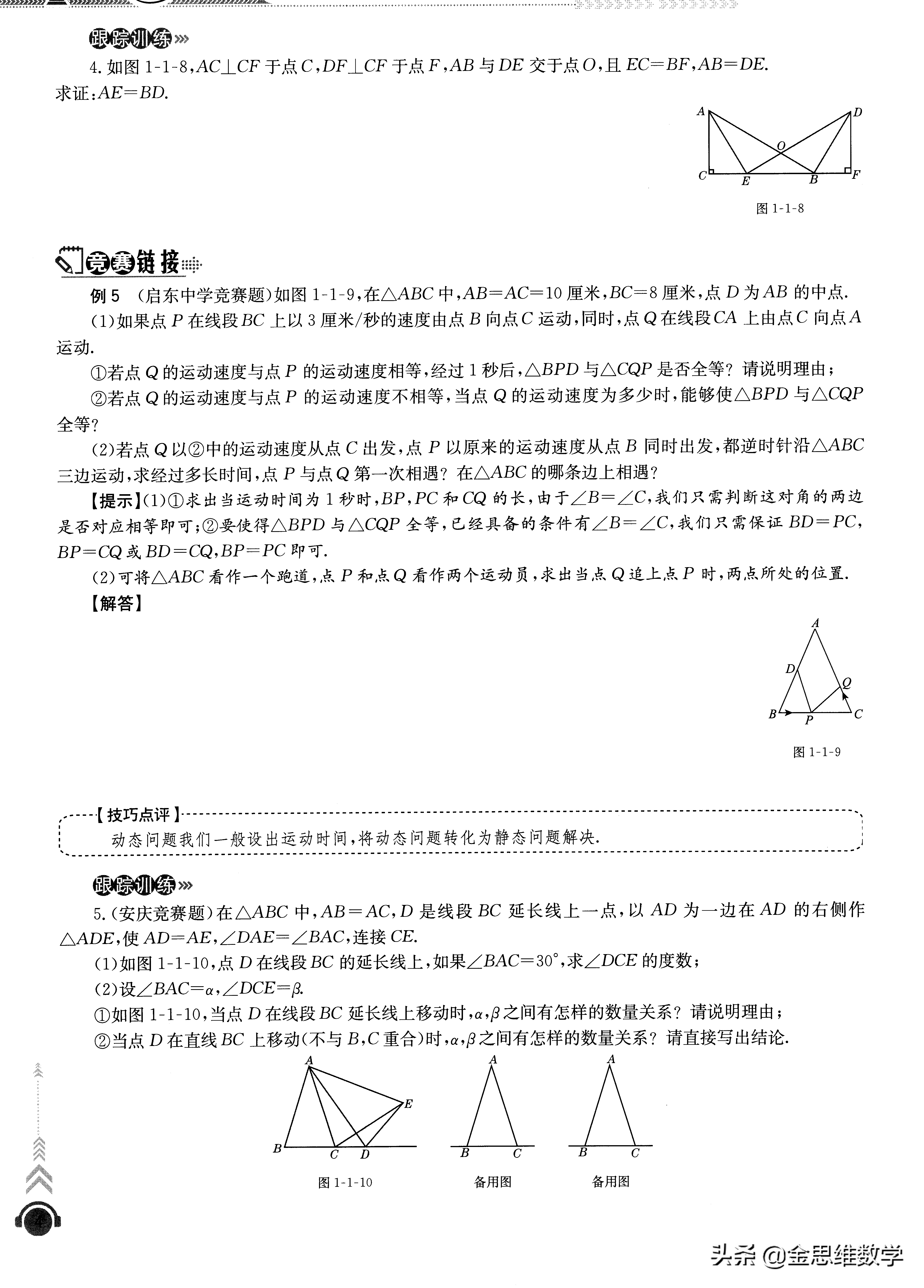 专题1几何证明题的常用思路专题2全等三角形判定方法的选择目录1