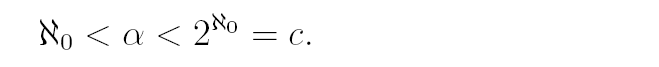 如前所述, 从 1874 年开始康托尔发表了关于集合论的一系列文章. 正当他踌躇满志而又一帆风顺地发展他那极具创新思想的超限数理论时, 却遇到了意想不到的困难. 1878 年, 康托尔在证明了正整数的基数 ℵ 0 和连续统基数 (即实数集合的基数)c 之间满足关系 2^ ℵ 0 = c后, 就猜想 ℵ 0 和 c 之间再也没有其它的基数, 即不存在一个集合 X, 使得 X 的基数 α 满足