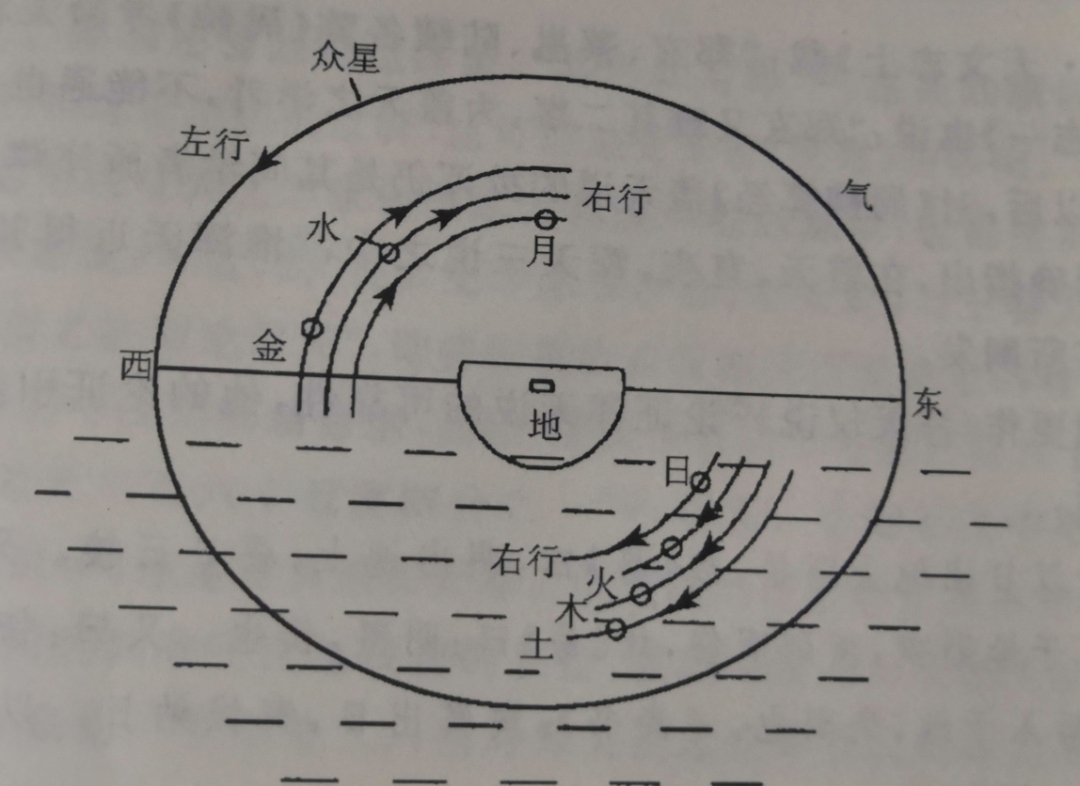 其中盖天说和宣夜说都认为天圆地平,区别是对日月星辰的位置、运行的说法有不同。