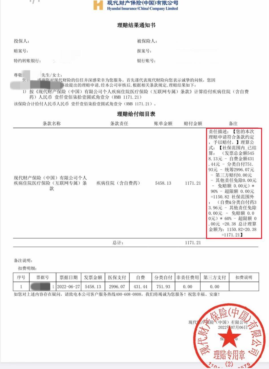 笔者个人是觉得保险公司有很大概率会以“投保未如实告知健康及职业告知第2条”为由拒赔的。不过后续提交材料后,现代财险也是正常进行了赔付。