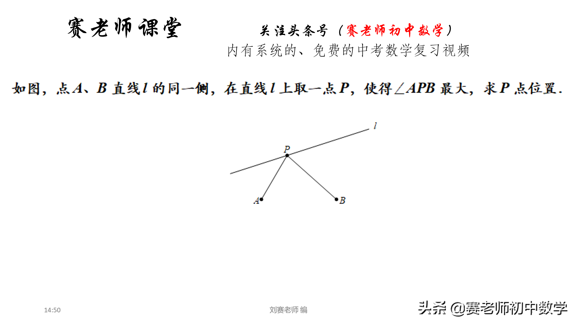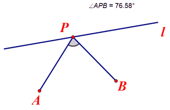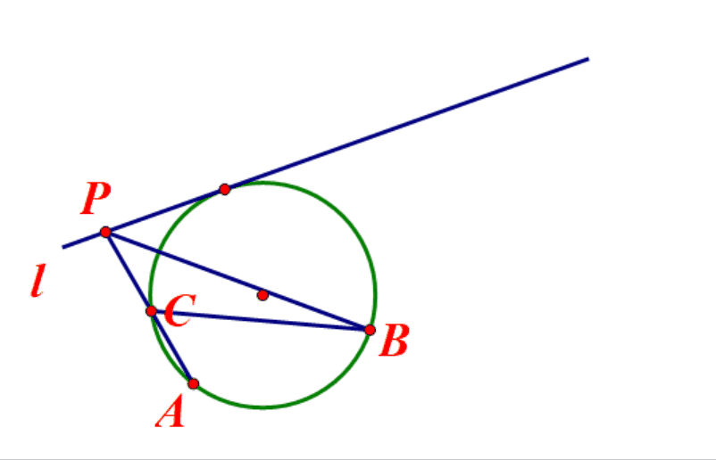 也就是说,点P到过A,B两点且与直线l相切的圆的切点时,∠p最大,等于∠ACB.