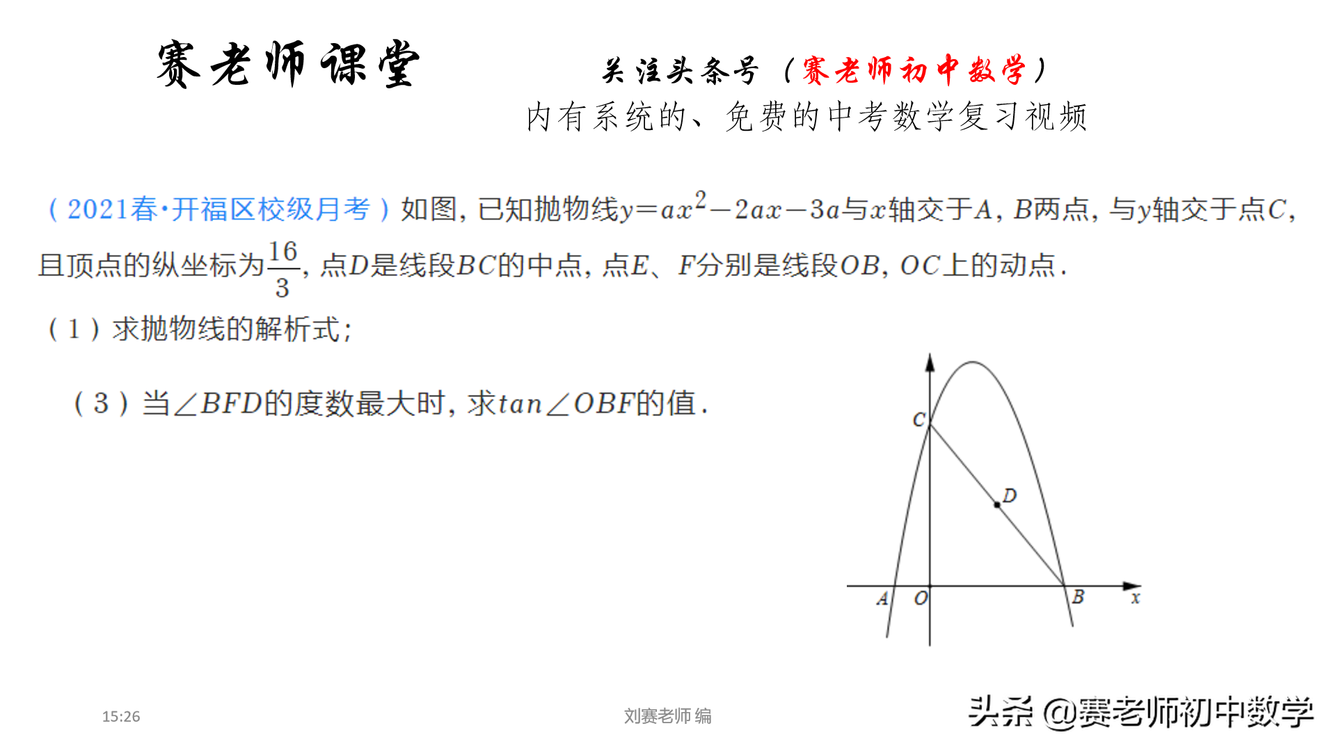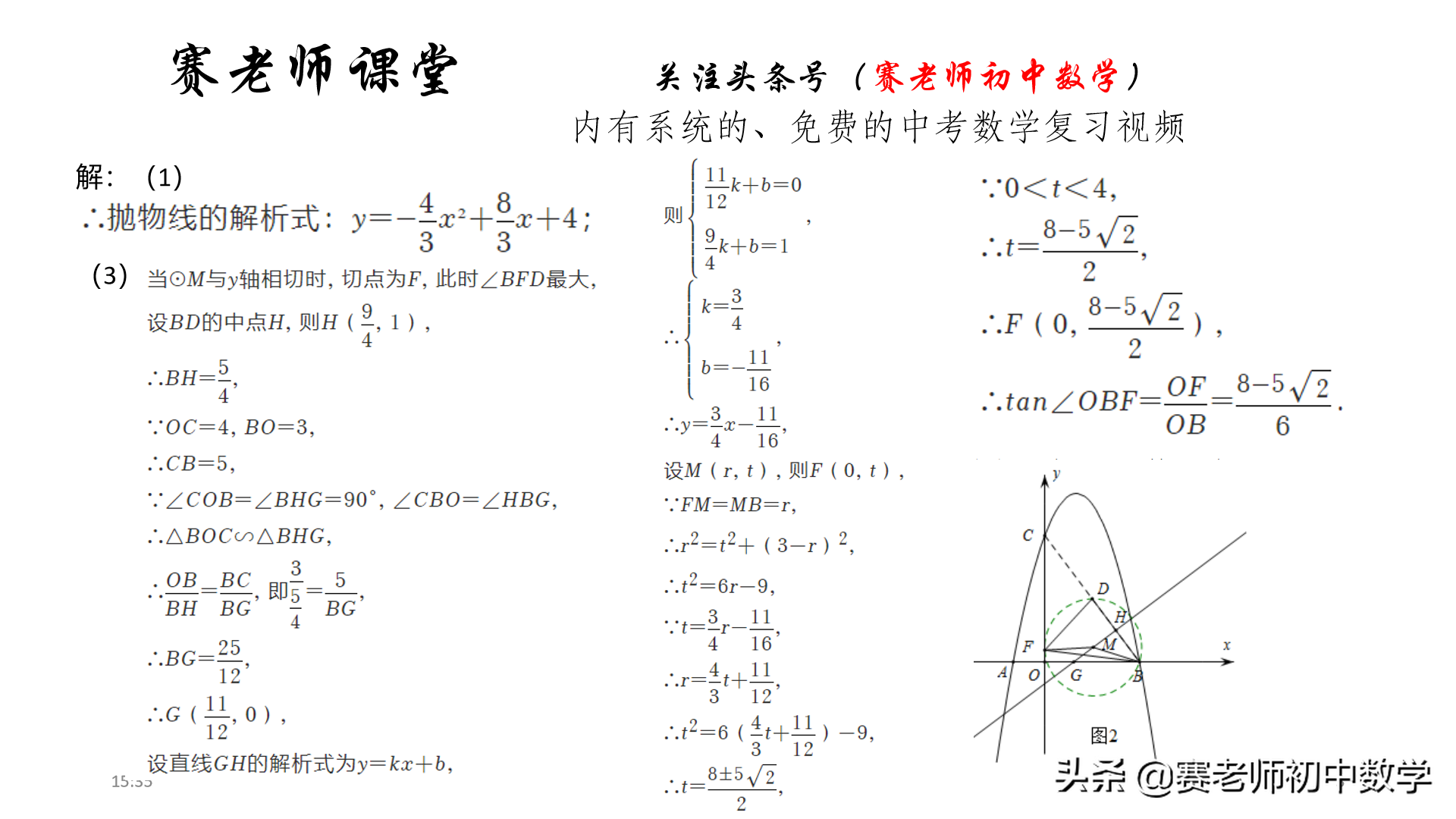 第(3)小问上图解法只是一种方法,不推荐。建议用切割线定理,△CFD∽△CBF,