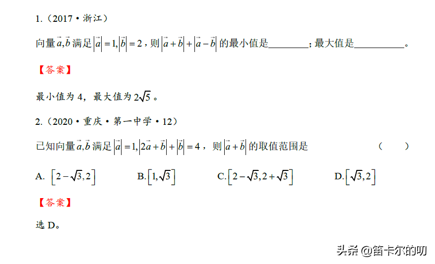 法2,首先利用垂直得到直角边不大于斜边,然后利用绝对值三角不等式放缩求出结论。这里充分体现了向量运算的优越性。