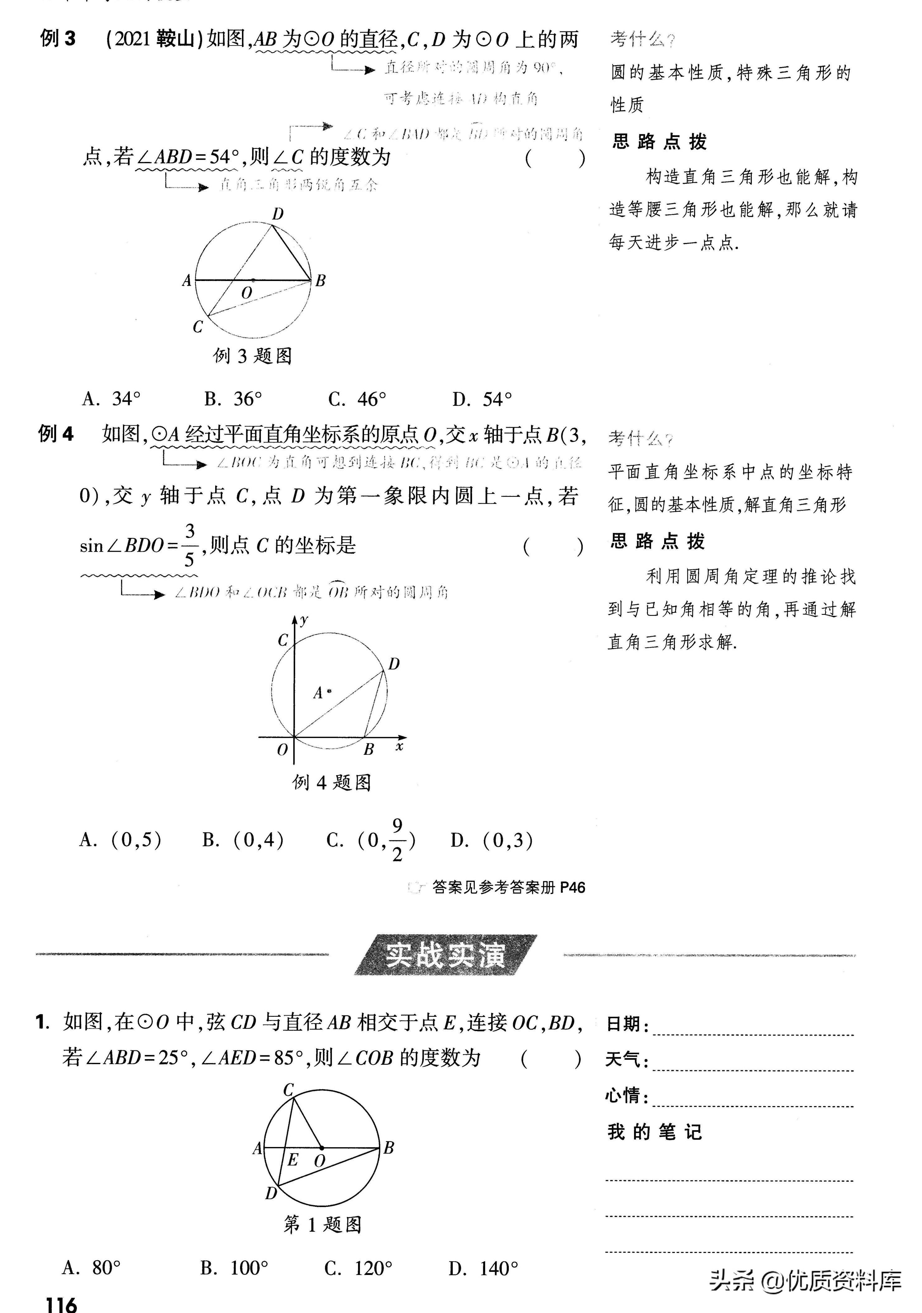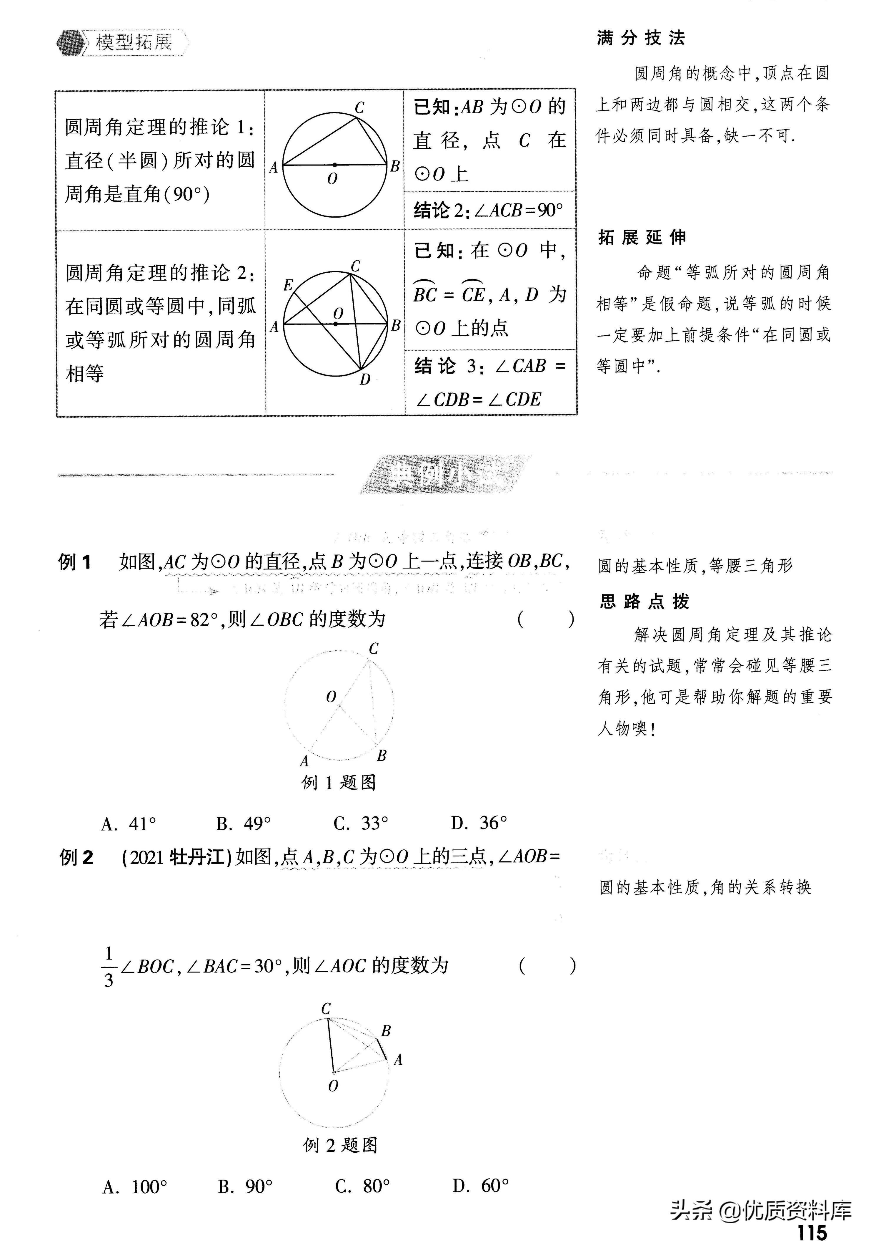 遇到有三个点均在圆上,且三点之间或与圆心连线构成角时,常考虑用圆周角定理求角度。