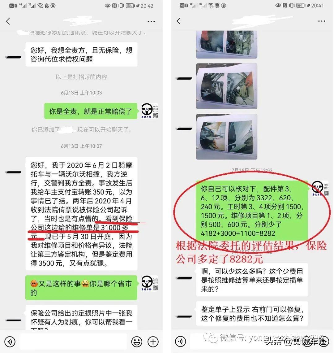当然,可能有人会对题目的说法不认同,确实,保险公司不是所有的定损都是扯淡,但可以确定,很大一部分的定损就是扯淡,非常随意和不正规。下面,编者用事实来证明我们的说法。因为,一般情况下,保险公司的定损很少有人去质疑或重新确定,毕竟定损后,保险公司自己赔了,也没有人去在意这个事。但是,如果,保险公司定损的这个金额,最后,不是保险公司自己掏钱,那么,掏钱的人就会在意,这时,是检验保险公司定损合理性和正确的最好时机。这点,也是编者一致强调的,即是裁判员又是运动员的运动员,得了冠军一点都不稀奇,如果有独立第三方当裁判员,得了冠军才是真本事。这里,如果保险公司定损的金额,能够经得起最后付款人的考验,才算是真正的合理正确,否则,就是糊弄车主,就是挂羊头卖狗肉。为什么这么讲呢?因为,6、7月份,我们处理了十几笔被保险公司代位求偿的的维权案例,除去最后协商按20-50%赔偿的,还有一部分由法院重新评估鉴定的,最后评估结果全部与保险公司定损的金额不同,关键是,有些争议很大,且很离谱,下面,我们就举个例子进行介绍。