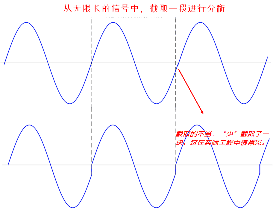 例如,如果测量一个无限长的正弦波连续序列,在某个时候,我们需要终止我们的观测来做进一步的分析。