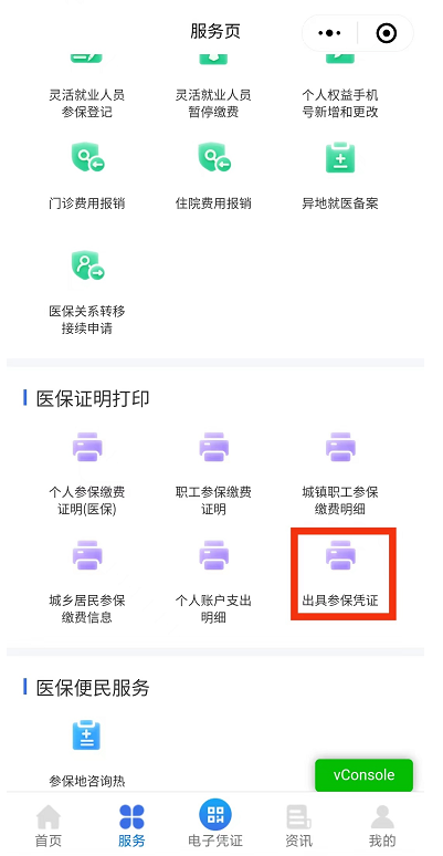 登录“四川医保公共服务”网厅→个人登录→进入个人网厅→我要打印→出具参保凭证