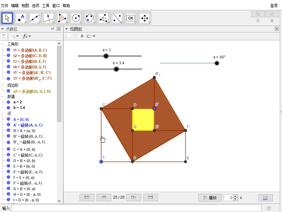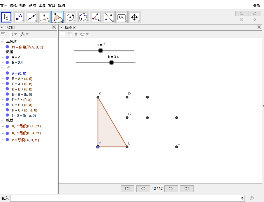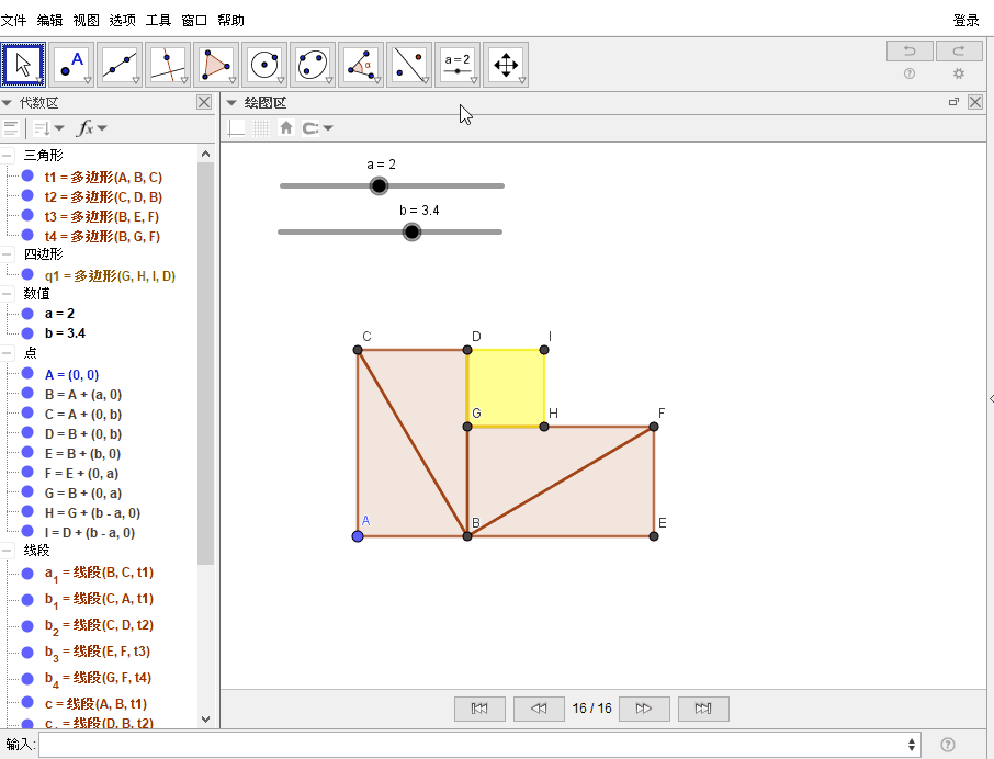 B + (0, b)E = B + (b, 0)F = E + (0, a)G = B + (0, a)H = G + (b - a, 0)I = D + (b - a, 0)再作三角形、正方形: