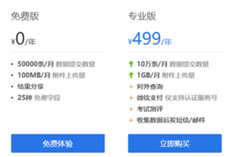 金数据分免费版,专业版,和专业增强版……..,不同版本具有功能和允许的数据提交量不同的差异。