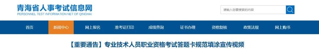 四、青海省发布《专业技术人员职业资格考试答题卡规范填涂宣传视频》。