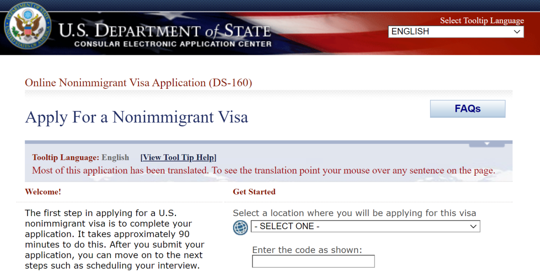 DS-160表格填写网址:https://ceac.state.gov/genniv/