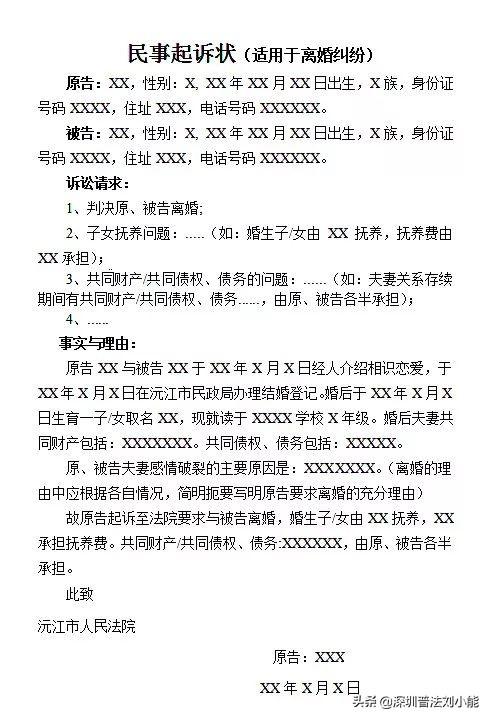 民事起诉状分首部、正文、尾部三部分。标题应写明文书名称“民事起诉状”。