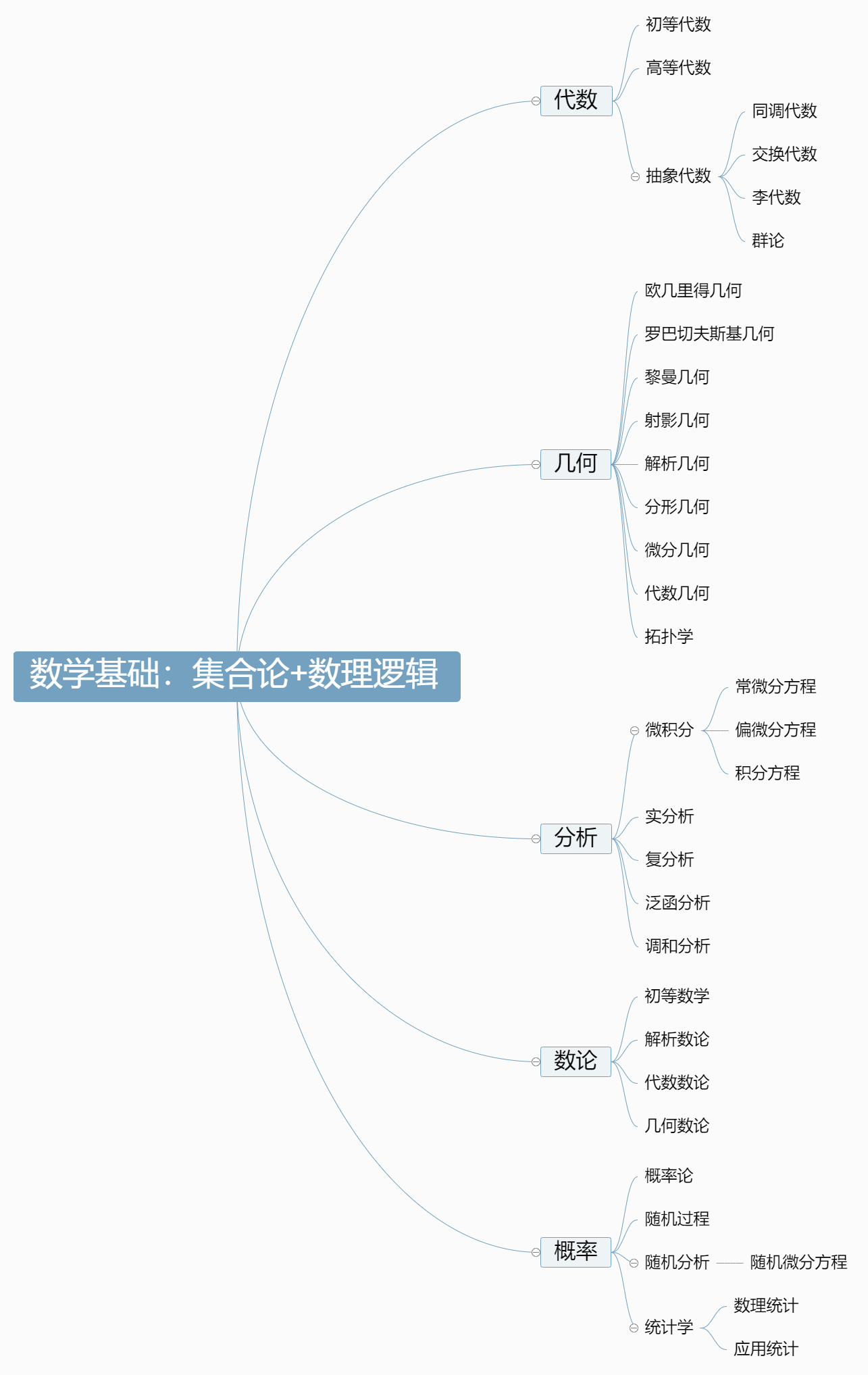 20世纪90年代初美国《数学评论》和德国的《数学文摘》编辑部联合制订的数学主题大约有100大类,每一大类之下,又分20至50个不等的子类,全部子类的总数约5100个;而所有的子类是可以相互交叉、渗透的。