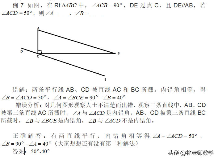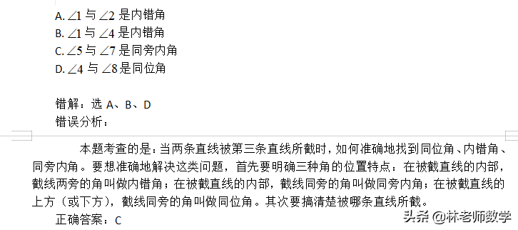 错误分析:平行线是同一平面内两条支线的位置关系,不相交的两条线,说的不明确,若是射线或者线段也有可能不相交,可是不能说明他们平行。所以说法错误。