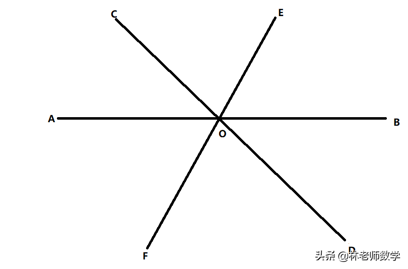例1 如图,三条直线交于一点,任意找出图的四对对顶角。