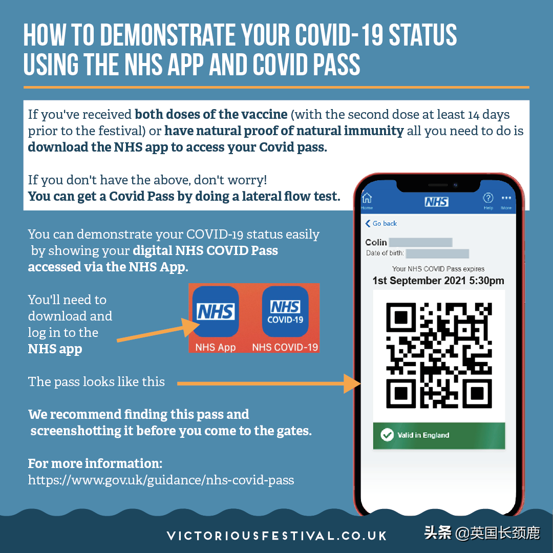 已在英国境内完成一剂或两剂疫苗接种在过去6月内有PCR检测呈阳性记录,且在呈阳性后已经完成180天的自我隔离年龄在18岁及以上 可获得用于参与境内活动的NHS COVID Pass