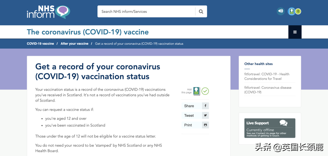 苏格兰居民,拥有苏格兰GP,但在英国其他地区(英格兰、威尔士、北爱尔兰)完成疫苗接种:可通过接种地区的官方接种证明申请方式获得接种证明。