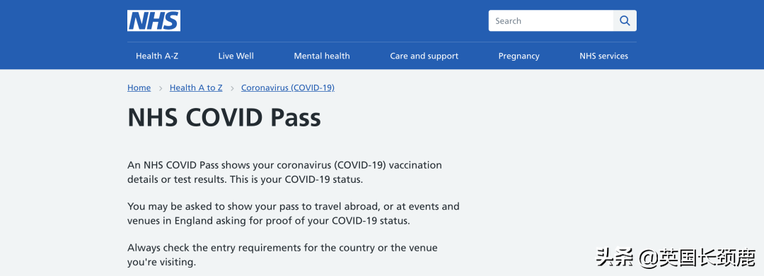 年龄在16岁及以上 可获得用于境外旅行的NHS COVID Pass
