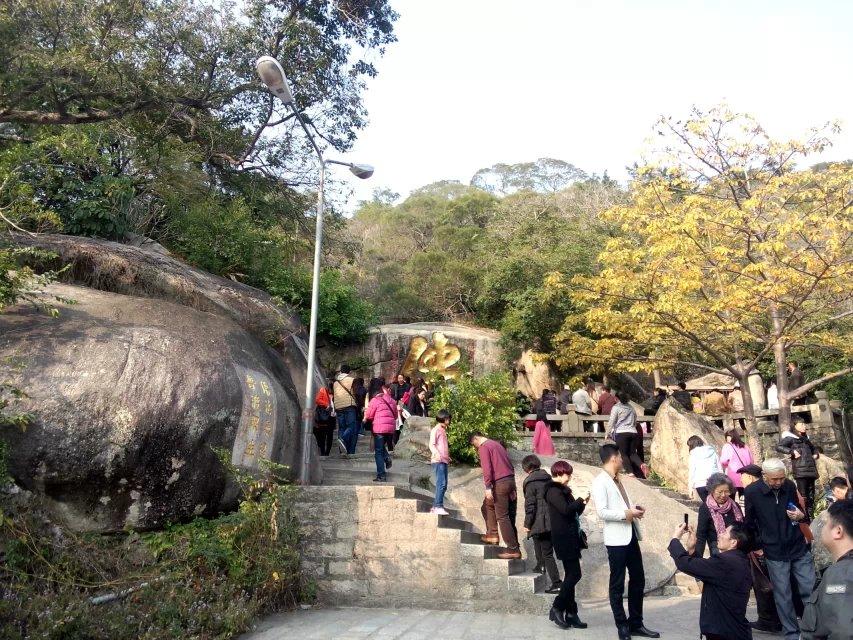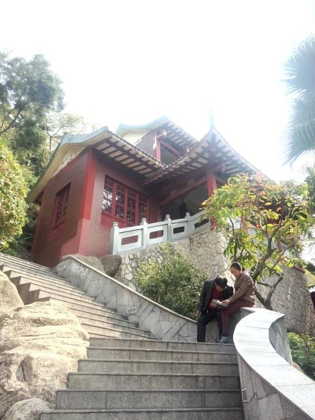上去看看,鸿山寺。拜佛时焚香是免费的,应该厦门所有寺院都是一样的。但只能在殿外烧香,香火还是很旺的。主殿很壮观,全木结构,里面供奉的都是菩萨。为了对神的敬重决不在殿内拍照。虔诚的消除杂念的焚香磕头,默念愿望。希望菩萨保佑。走出寺院上后山,爬山,一路见到高的地方就想上去,呵呵。看见一弥勒佛,奇怪他的手势竟然是抱拳。又一个佛教被汉化的例证。山不是很高但造景不错。坐的卧的都是免费的,山顶是郑成功当年抗击海外侵略者的瞭望寨。厦门有很多郑成功的遗迹。厦门和台湾隔海峡相望,金门岛离台湾远,离大陆近,但金门实际是台湾管着,可大陆从来没有承认他是台湾的。炮击金门,攻而不占,毛蒋给美国人演了出戏,不然台湾和大陆就和朝鲜和韩国一样,一个民族两个国家了。中华文化力量再一次赢了,无论蒋毛,他们都是在中国大地上生根发芽的,都没流洋过,但凡有一个受过外界文化影响,那么大陆和台湾会是另一个样子。