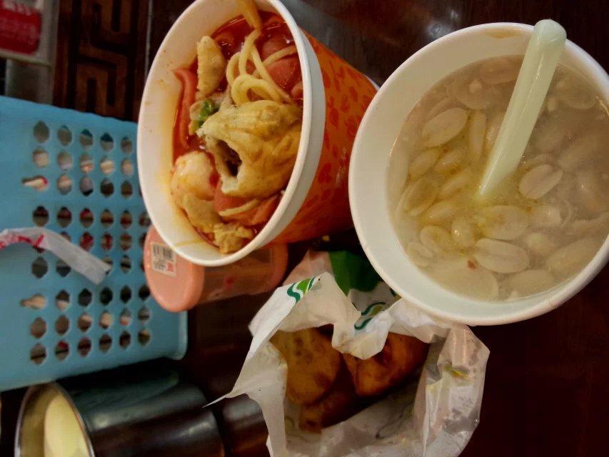 一觉到天亮。按照龙岩大哥的指点,沿着思明路一直走,就到厦大了。清早起来好饿,看看有什么吃的。发现了一个小店,妈妈爱心粉丝,有点小贵18块啊,不过内容很丰富,瞧这满满一碗,环境很温馨,店主应该是个妈妈,孩子在帮妈妈收拾碗筷。