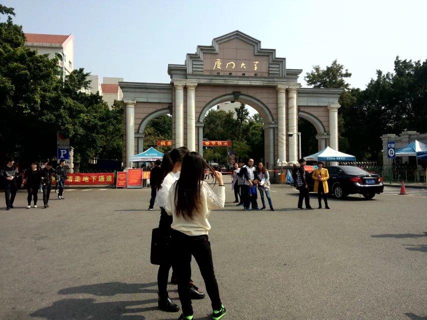 终于到了,原来厦大和南普陀寺是邻居啊,先去厦大回来再去南普陀。厦大门口一定要留个影,找个妹子拍吧,看来看去有三个妹子在前方,背影中间的最好,谁知道转头过来牙套加龅牙,果断给了穿运动鞋的妹子。我就不看了,胖的大家一定都不认识了,就不出来吓人。