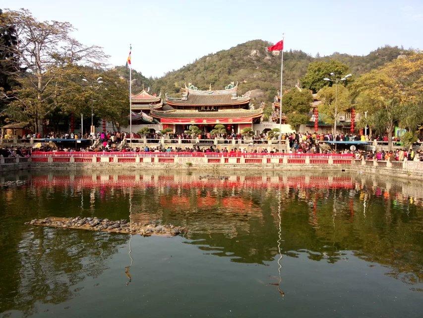 下山已经五点了,寺院里人少了一点,赶紧去大悲殿跟观音大师说说我的愿望,让出声说出来,还真有点不好意思,不管了,报上名来,说了三遍,求菩萨保佑。还在功德箱里投了20元钱。起身出寺,在寺前香炉再拜众佛,焚香三根,虔诚祷告。请保佑我吧,拜托了!!回来的路上吃了当地特色土笋冻,挺好吃,我吃了三四个,后来一个朋友告诉我那是用虫子做的,吧我恶心的,但味道确实还行,还有花生汤 ,生煎包,沙茶面,沙茶面真不咋样,直接没吃完 .