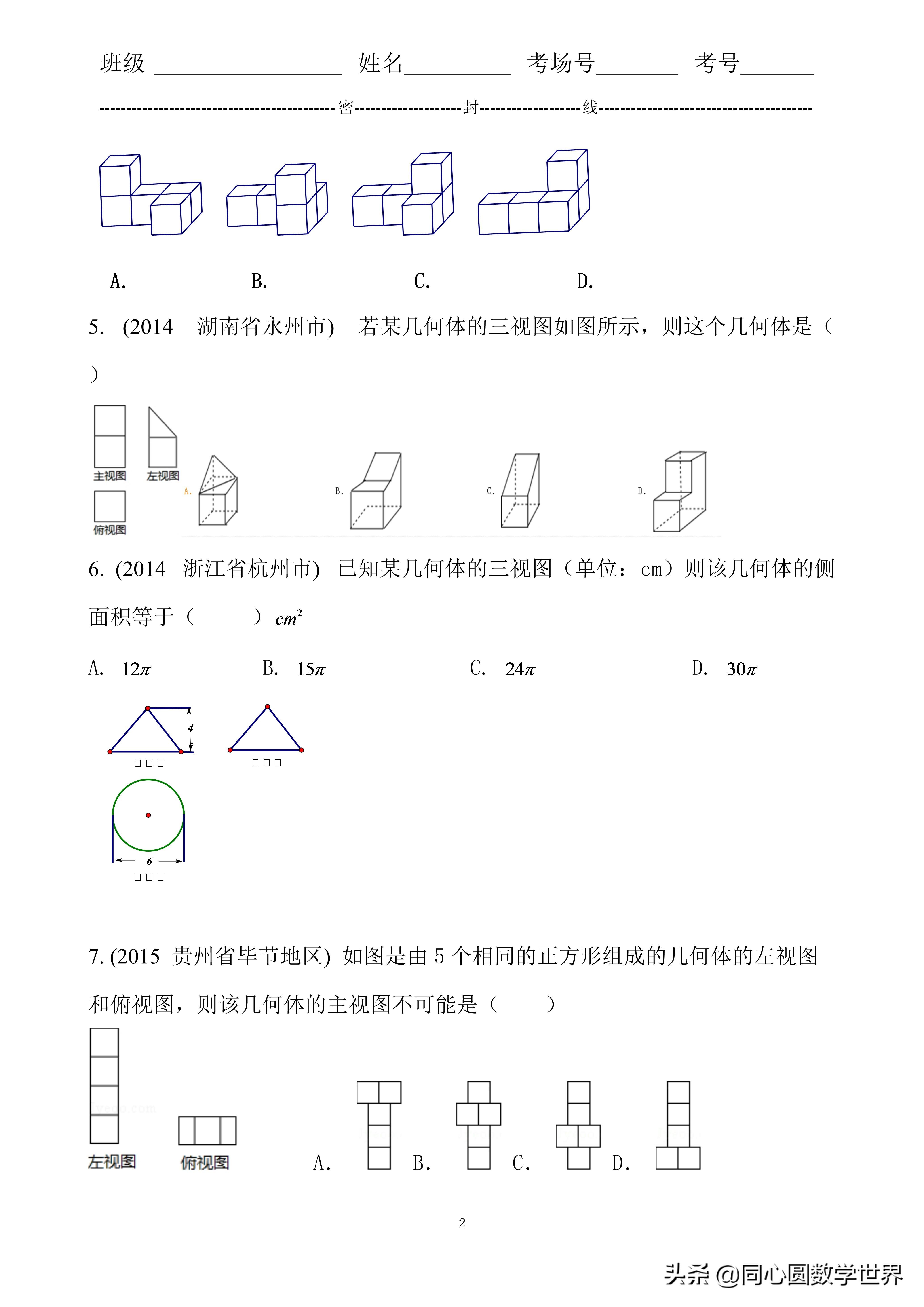 故选:D.点评考查了由三视图判断几何体的知识,解题的关键是具有较强的空间想象能力,难度不大.