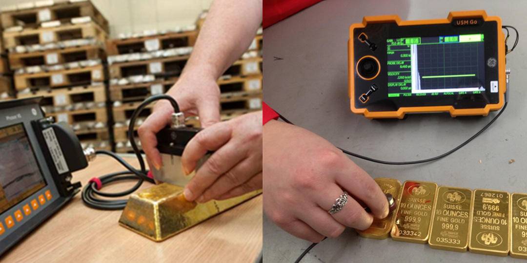 超声波有如此神奇的功能,它不仅用于我们的身体检查,还广泛用于工业零部件、管道和建筑结构内部的探伤。同样地,我们也可以用它来检查金条里边是不是暗藏了什么猫腻,并且不需要把它一片一片地切开。在许多金库里,超声波探伤仪是必备的检测工具。