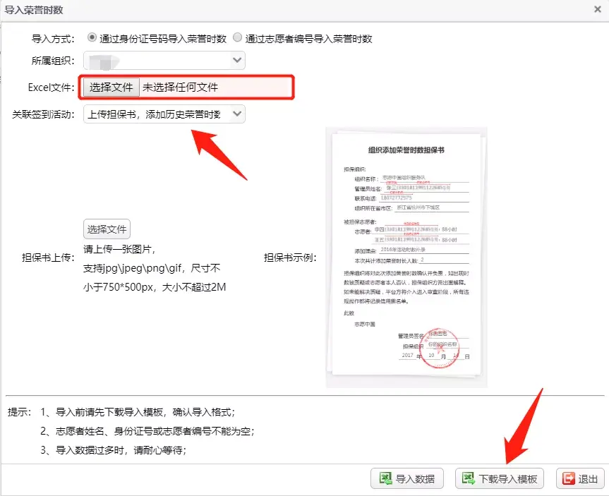 温馨提示:管理员在填写“导入原因”时需要说明是“因参与疫情防控类活动补录时长”。