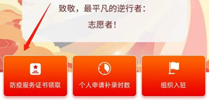 如果您曾使用志愿汇APP记录疫情防控类志愿服务活动,首页点击专区中“防疫服务证书领取”按钮即可领取证书!