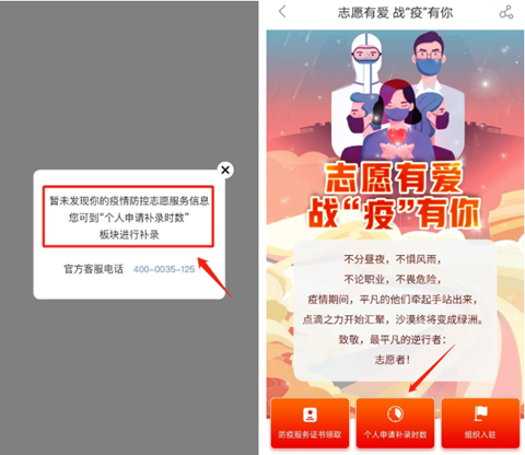 1个人疫情防控志愿服务时数补录申请