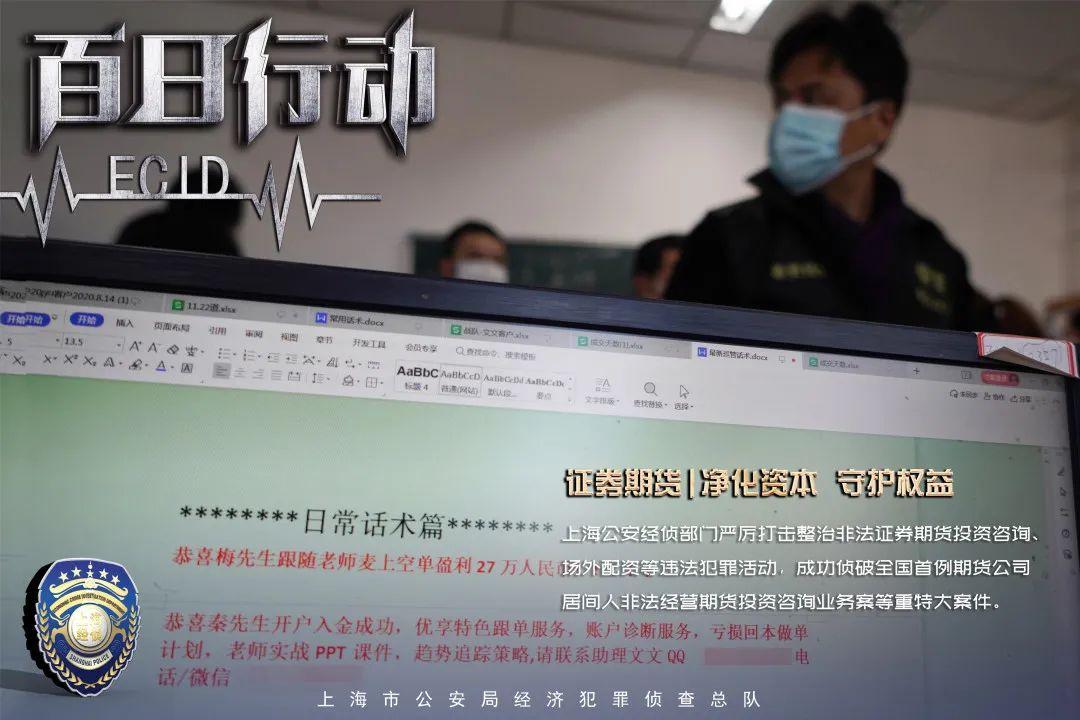 同时,坚决打击各类侵害投资者财产权益的非法证券、期货犯罪,集中破获了期货公司居间人非法经营期货投资咨询业务、证券从业人员非法经营场外配资业务、利用短视频社交平台引流实施非法经营证券投资咨询业务等一批新类型、新手法的案件,切实保障投资者合法权益。前期,上海公安经侦部门成功侦破了全国首例期货公司居间人非法经营期货投资咨询业务案,涉案交易金额3.2亿余元。