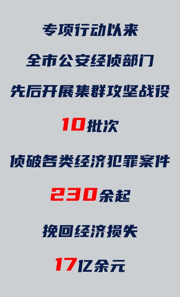 夏季治安打击整治“百日行动”以来,上海公安经侦部门依托新型现代警务机制,精准预警、精准打击、精准处置各类突出经济犯罪及风险隐患,深挖侵害金融安全、营商环境、百姓民生的犯罪线索。