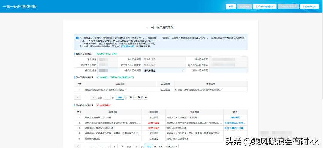 第二步:点击【注销预检】按钮可对未办结事项进行展示,处理完未办结事项后,再办理注销登记。