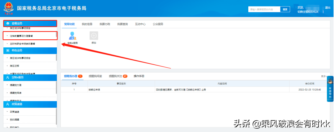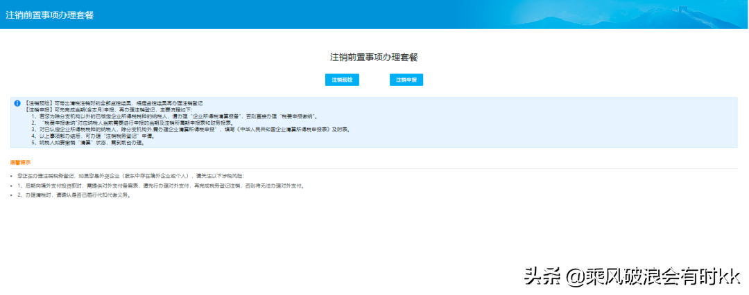 答:第一步:登录电子税务局,点击【注销前置事项办理套餐】菜单,进入注销登记引导页;
