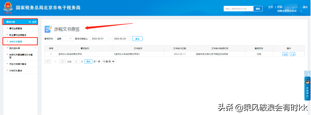 第七步:纳税人可在电子税务局的“我要查询”—“涉税文书查签”模块中签收《清税证明》通知书。在操作列中查看《清税证明》具体信息。