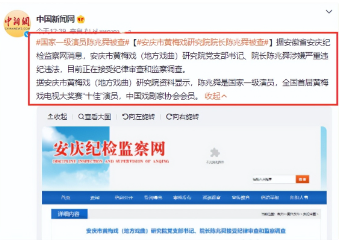 国家一级演员陈兆舜被调查