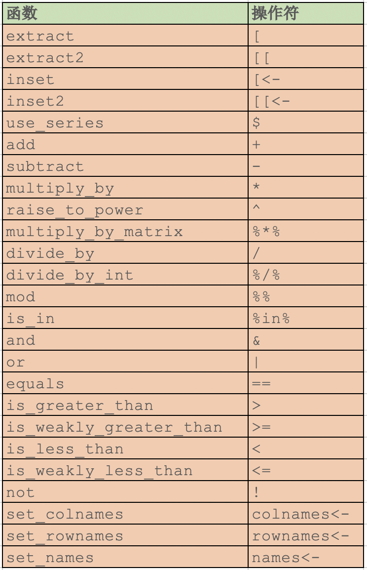 除了上面 4 个主要的管道符之外,还重新定义了一些函数操作符,如下