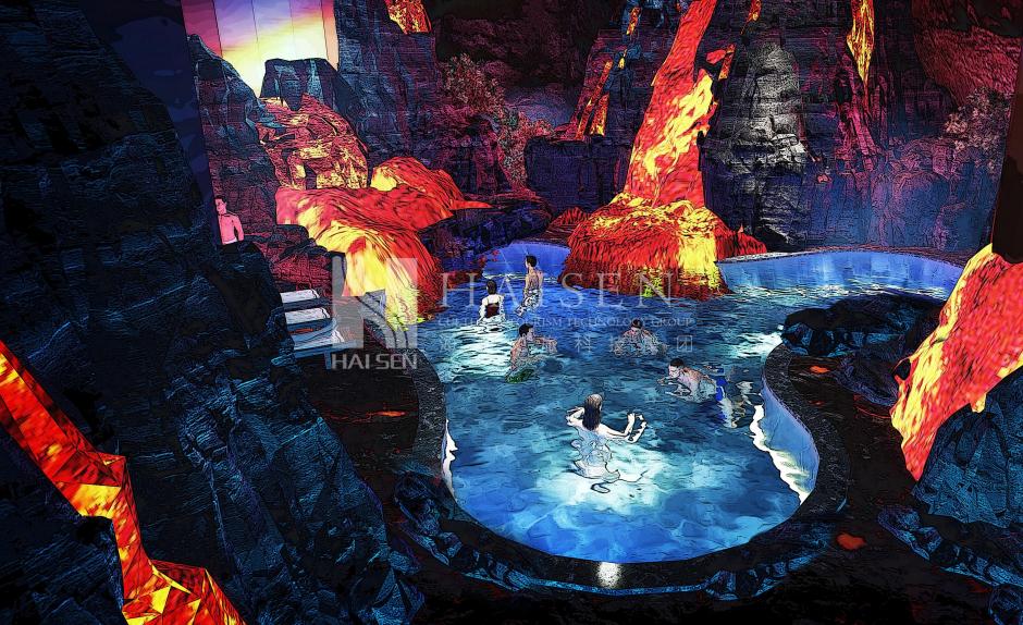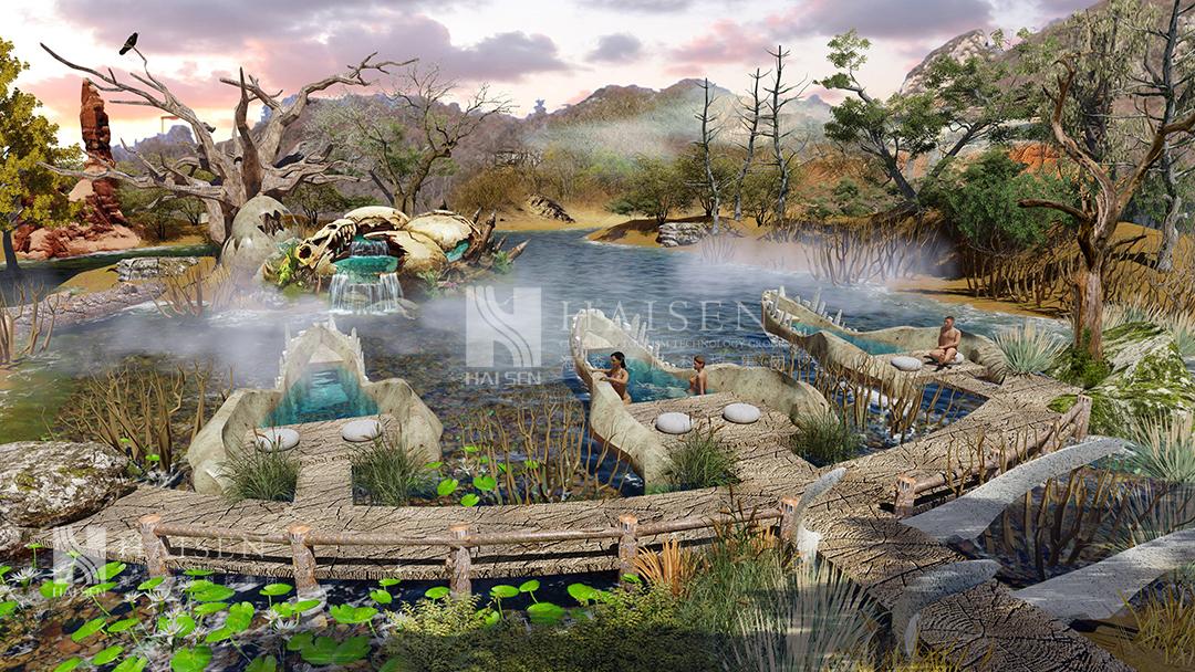 将矿山资源、温泉资源、环境资源相互融合,创新打造成以地心奇遇为主题的地下游玩空间,将跌宕起伏的故事贯穿于所有的冒险项目、温泉项目和戏水项目当中,当游客在体验设备惊险刺激和温泉养生惬意的同时,享受作为“主角”的智慧和勇气,便是本区域的核心特色。