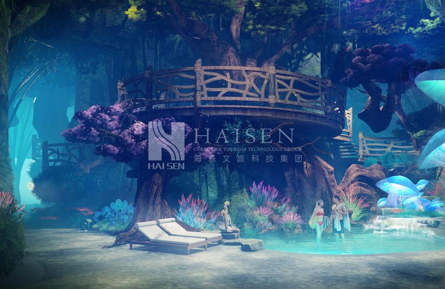 ④地心神秘岛(地心温泉):以“神秘地心世界”为主题,作为地心历险的首站区域,是集集散、景观展示、交通接驳、温泉体验、温泉游乐等多重功能于一体的空间,以光影效果、VR技术、全息投影技术,营造可玩性高、危险度低、轻松的游乐氛围,打造欢乐、休闲、趣味的体验空间。