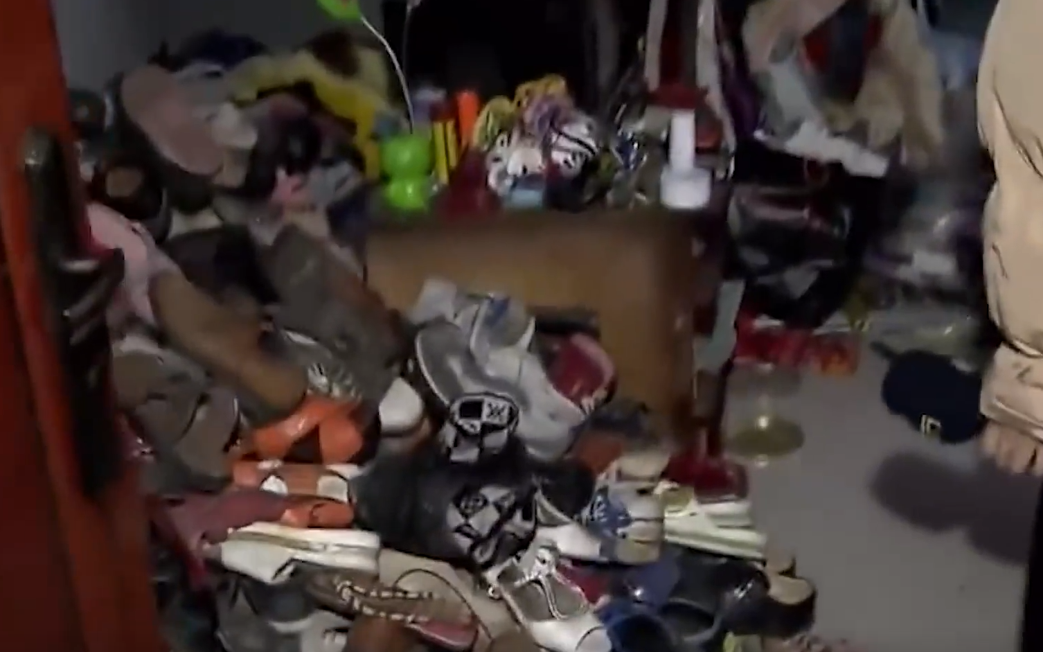 踏进易倍加的家门,整个屋子被各种捡来的东西塞得满满当当,各种各样的鞋子、内衣、包包被他摆在各处,连下脚的地方都没有。这哪里像个有刻碑手艺的人。