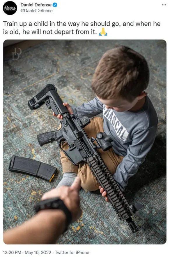 1. 美军火商用儿童模特拍步枪广告引众怒,涉事产品与得州小学枪击案凶器是同款 据美媒《华盛顿邮报》当地时间27日报道,美国军火商丹尼尔防务公司(Daniel Defense)被指曾在社交媒体上发布广告,竟用儿童模特来推销突击步枪。引发众怒的同时,人们惊讶发现,涉事步枪产品与24日发生的得州小学枪击案的凶器还是同款。(观察者网)