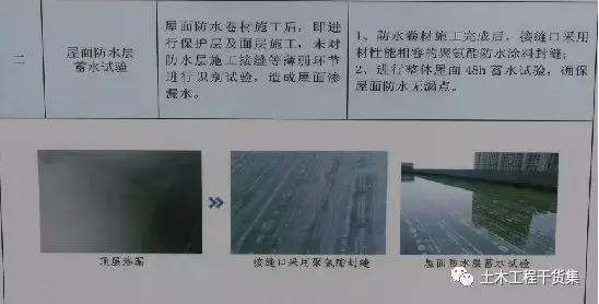 屋面在结构完成后和防水层施工后各做一次蓄水试验,确保屋面不防渗漏。