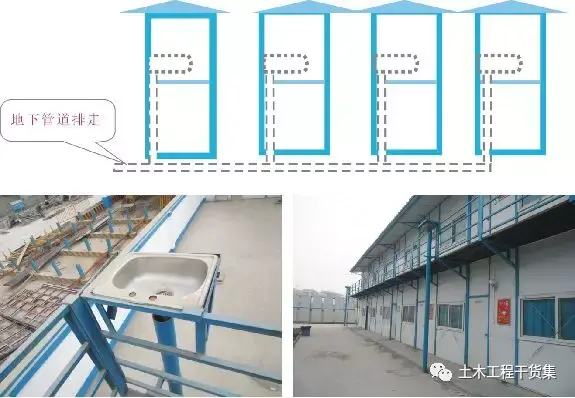 工人和管理人员宿舍二层走道按一定比例安装2~3个下水槽,排水管与地下排水沟相连。