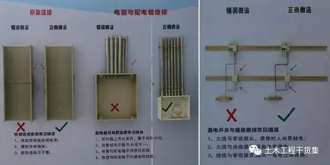 电气管线盒安装样板直观展示错误的和正确的施工做法,有效指导现场施工。