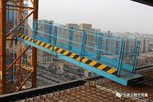 塔吊附着设施安装平台、进出通道采用工具式设置,安全美观。